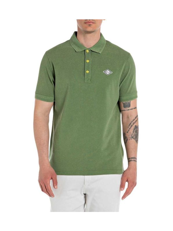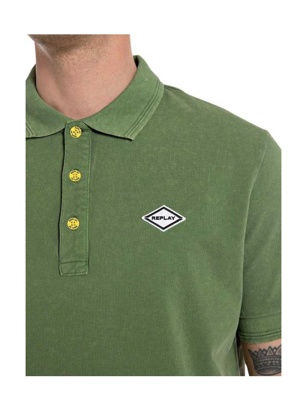 Replay zelena polo majica sa žutim dugmadima i logo printom ispod kragne