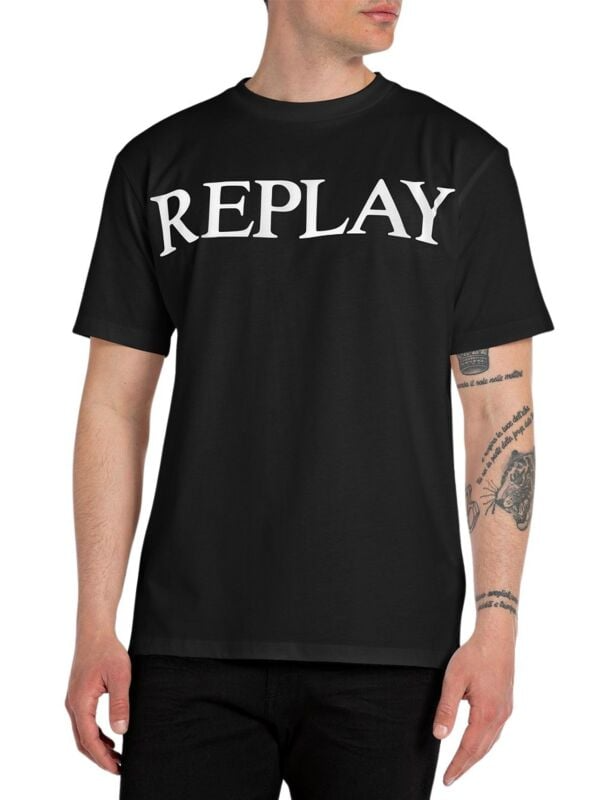 Replay crna muška majica s bijelim logo printom