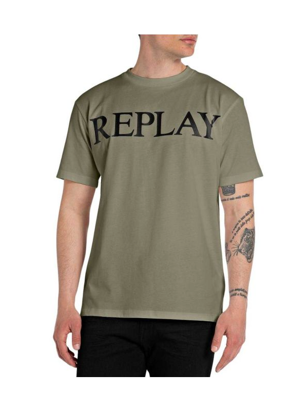 Replay maslinasta muška majica sa crnim logo printom