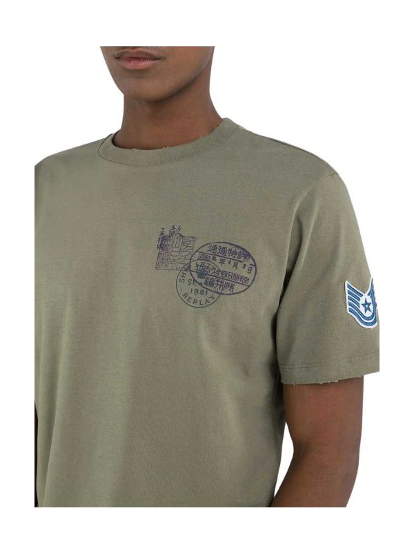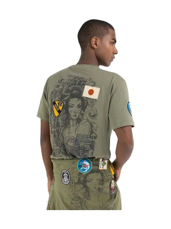 Muška pamučna maslinasto zelena Replay majica sa printom inspiriranim japanskim motivima