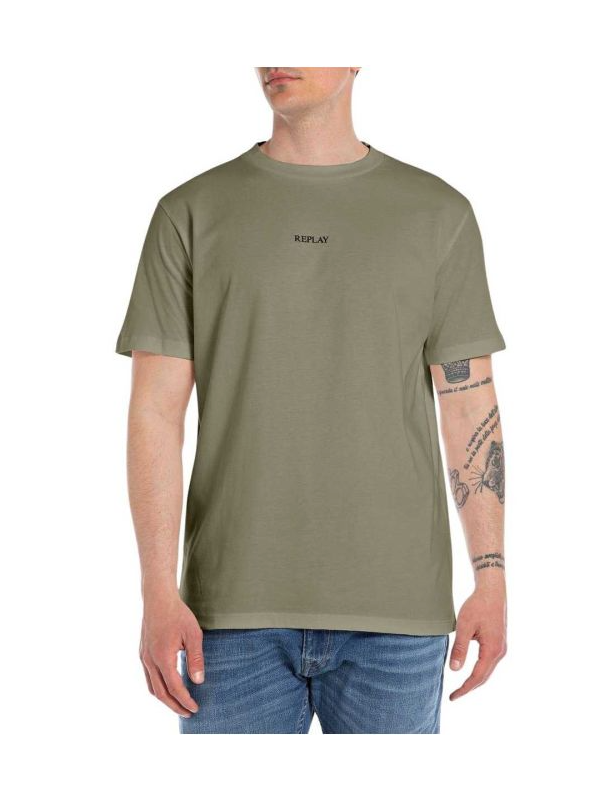 Replay maslinasta muška majica sa mikro logo printom
