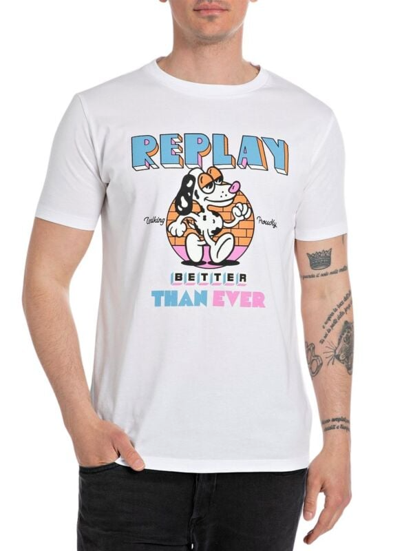 Replay bijela muška majica s printom