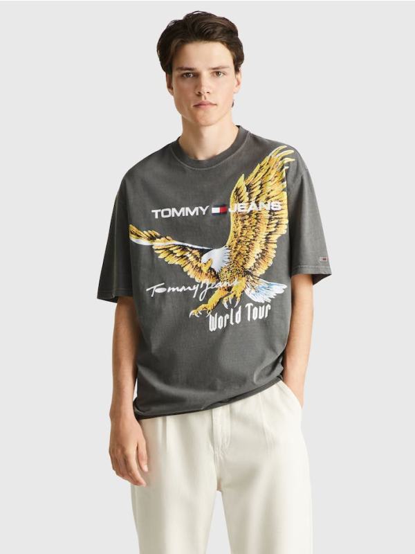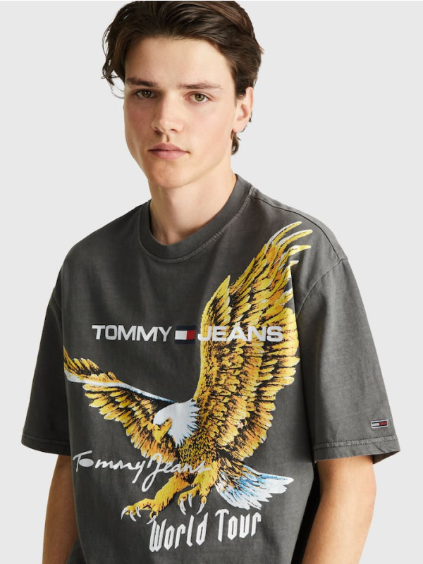 Unesite retro američku energiju u svoju ležernu garderobu s ovom velikom majicom s privlačnim printom orla.