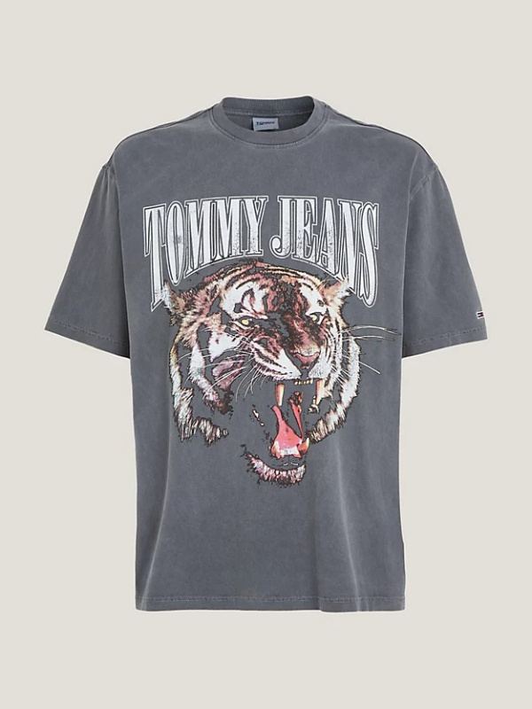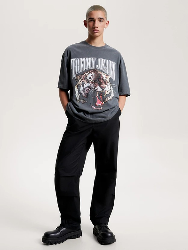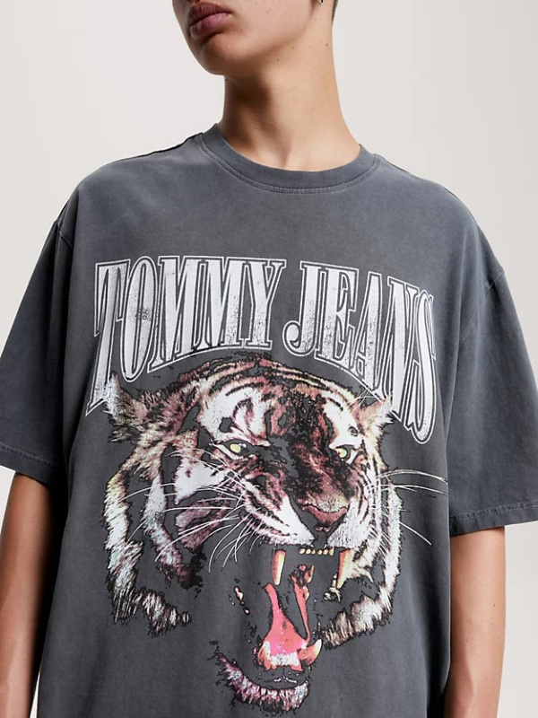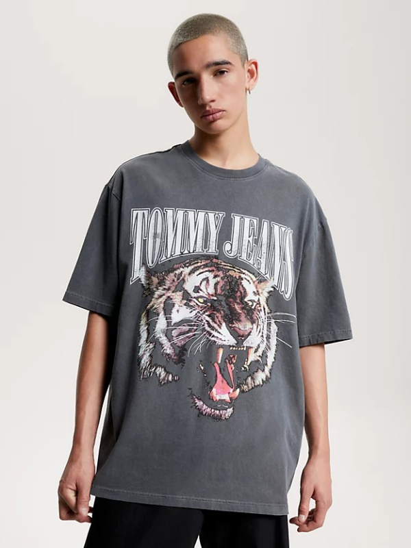 Istaknite se ovom majicom kratkih rukava krojenom prema trendovskom predimenzioniranom kroju i završenom dizajnom rikajućeg tigra.