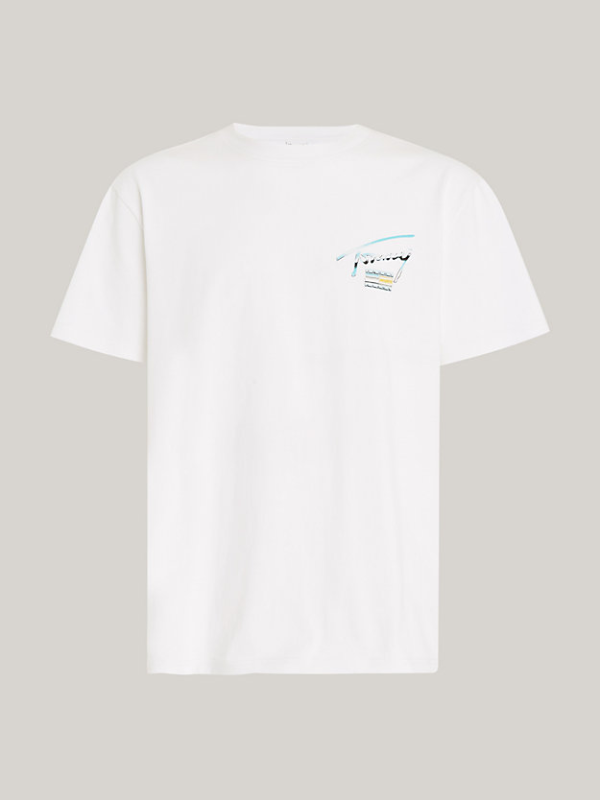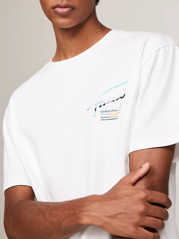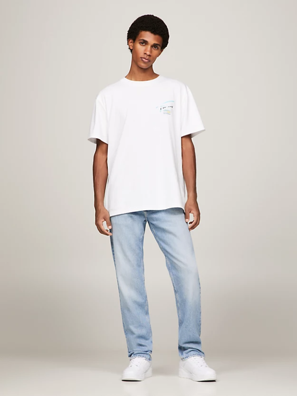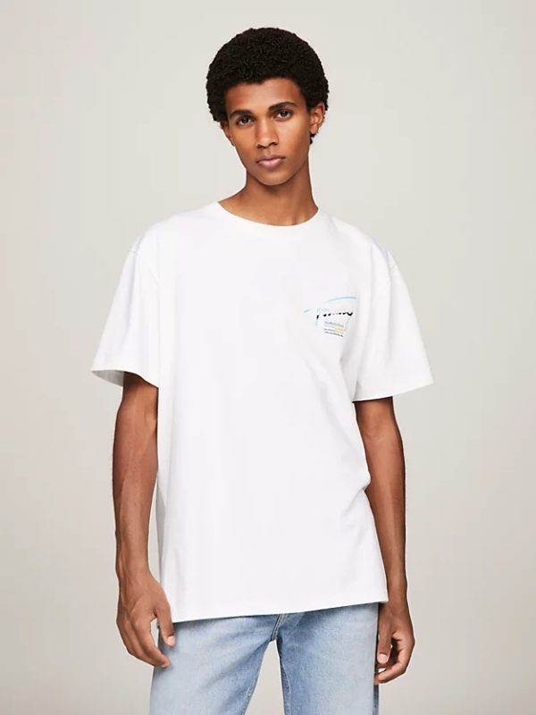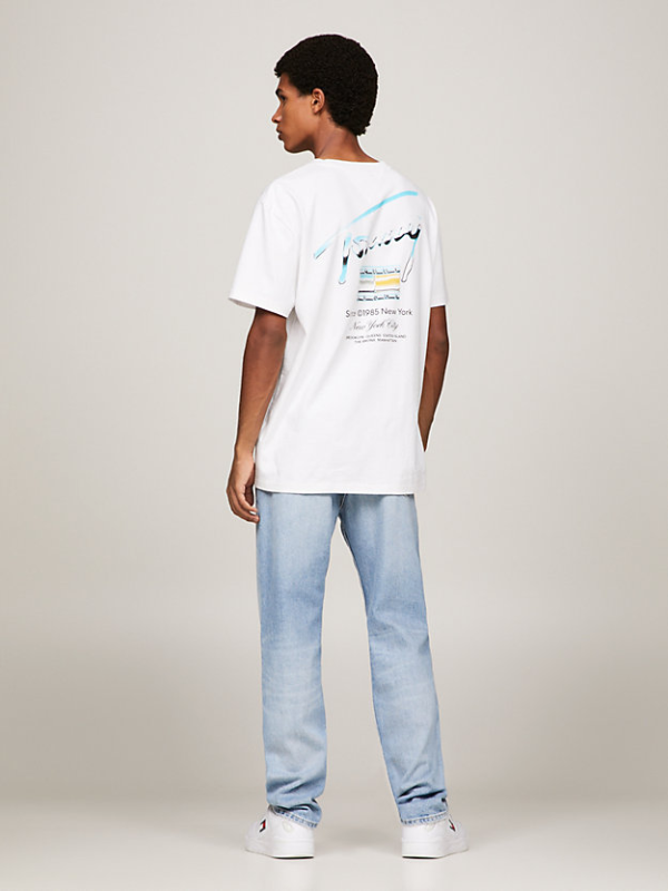 Ovdje je logotip s potpisom Tommy Jeans predstavljen u sjajnom metalik stilu, dodajući svjetlucavi bljesak na poleđini ove majice.