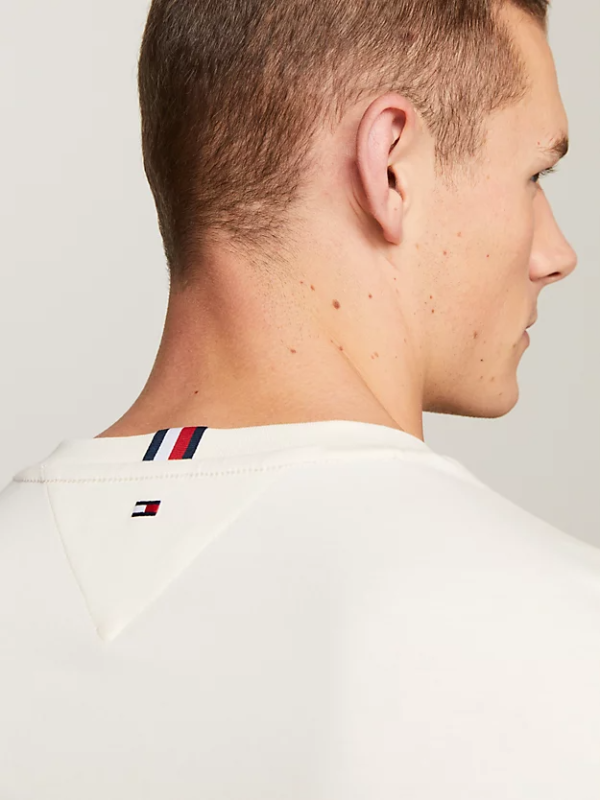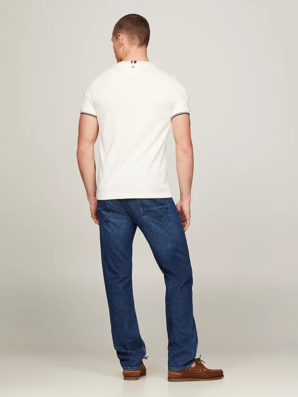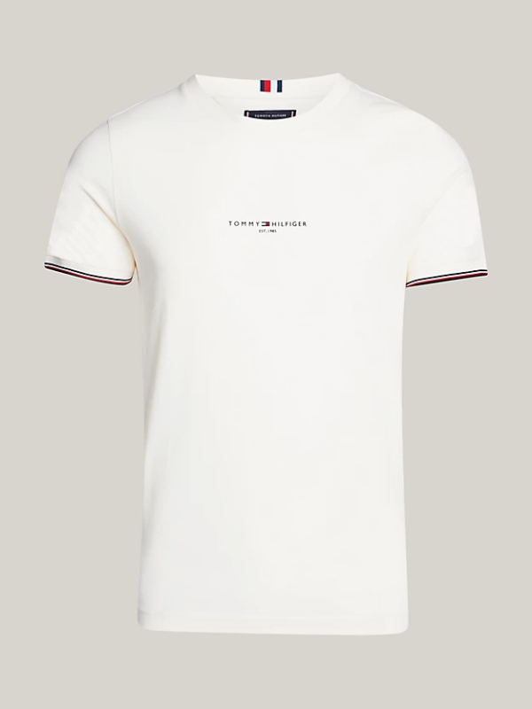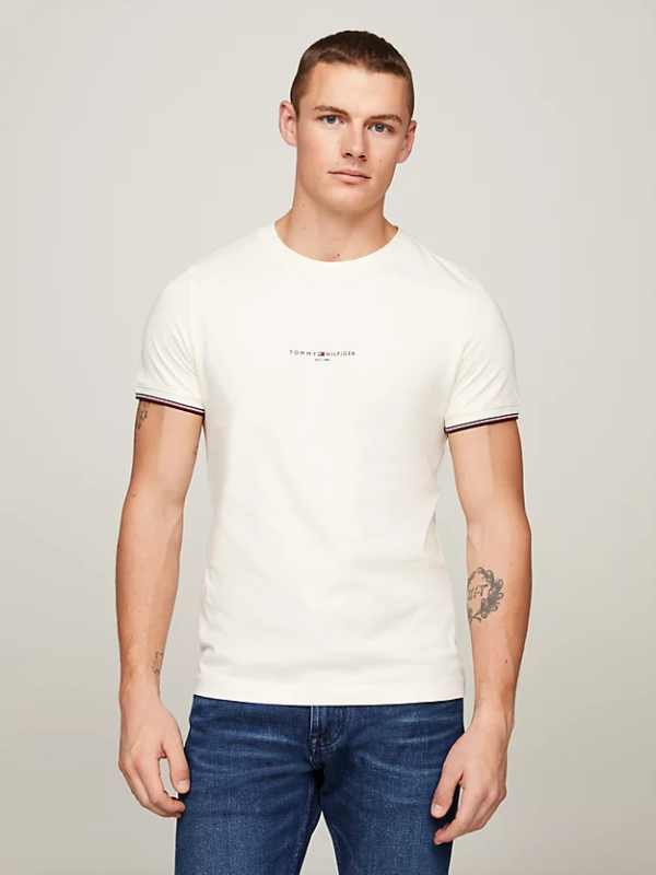 Poboljšajte svoj stil uz ovu usku Tommy Hilfiger majicu kratkih rukava, izrađenu od čistog pamuka i rukava s vrhom u prepoznatljivim bojama.