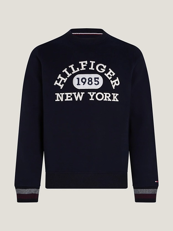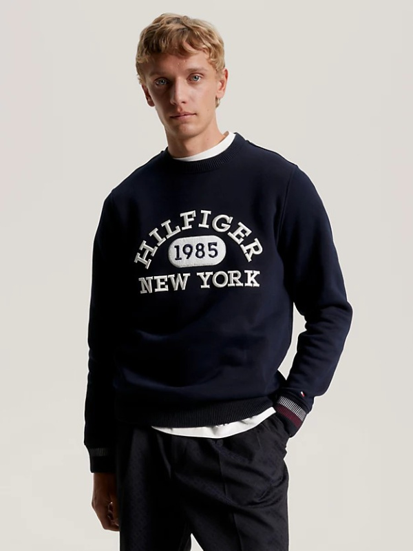 Ova majica s okruglim izrezom ima podebljani monotipski logotip na prsima i prepoznatljive manžete, dajući joj kolegijalnu atmosferu.