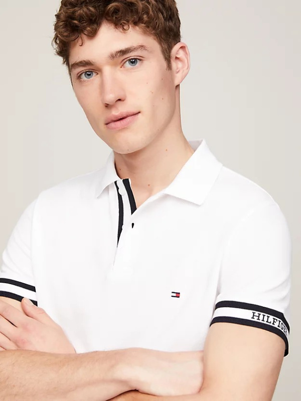 Monotipski logotipi i vrhovi na manšetama, kao i elegantan uzak kroj daju ovoj polo majici istaknut izgled.