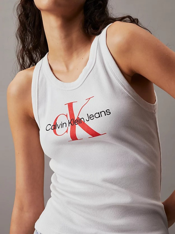 Ženska rebrasta pamučna bijela Calvin Klein majica s monogramom