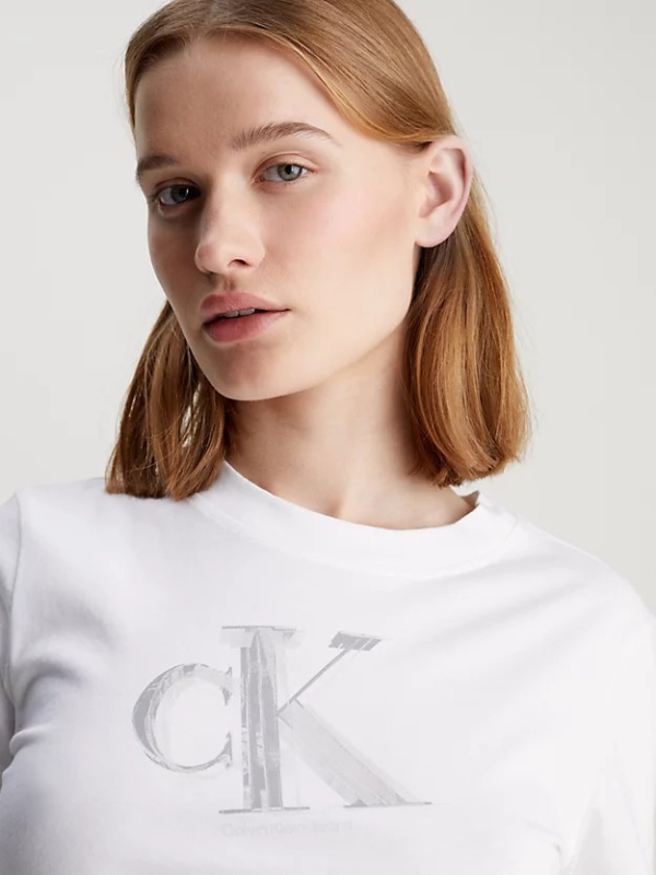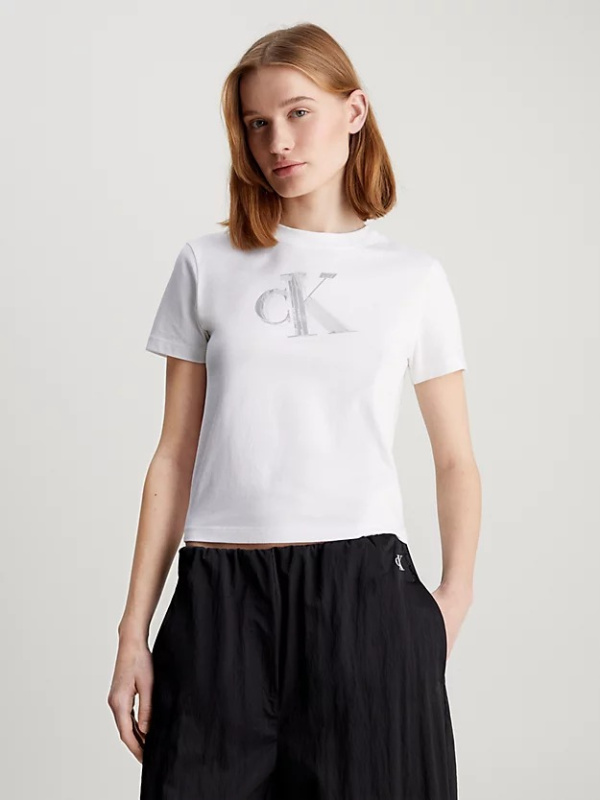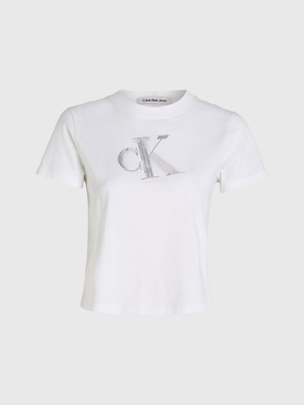 Ženska bijela Calvin Klein cropped fit majica s monogramom na prsima
