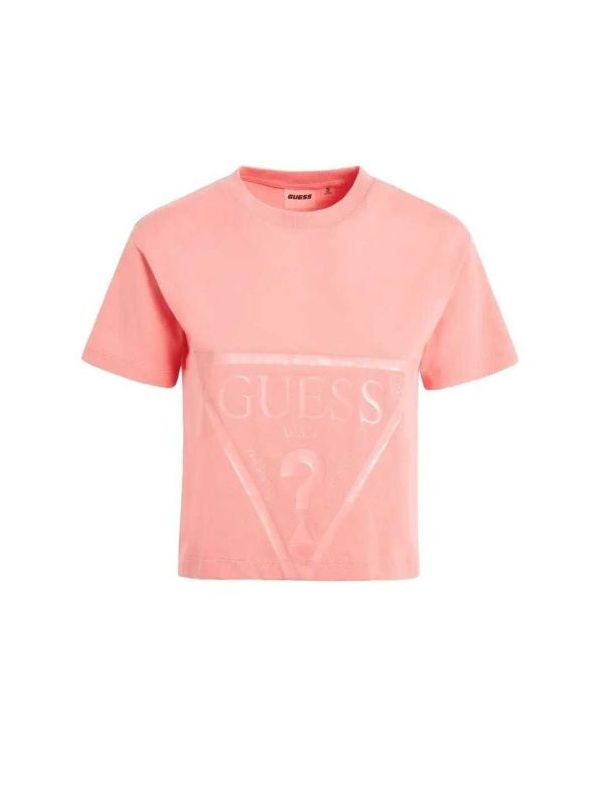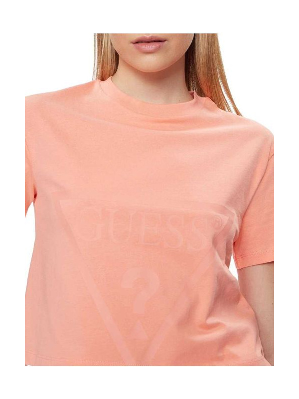 Ženska pamučna Guess Athleisure Adele crop fit logo majica kratkih rukava