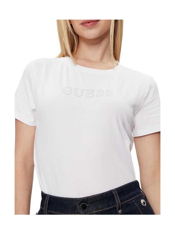 Ženska pamučna Guess crna majica sa logoom od sitnih cirkona