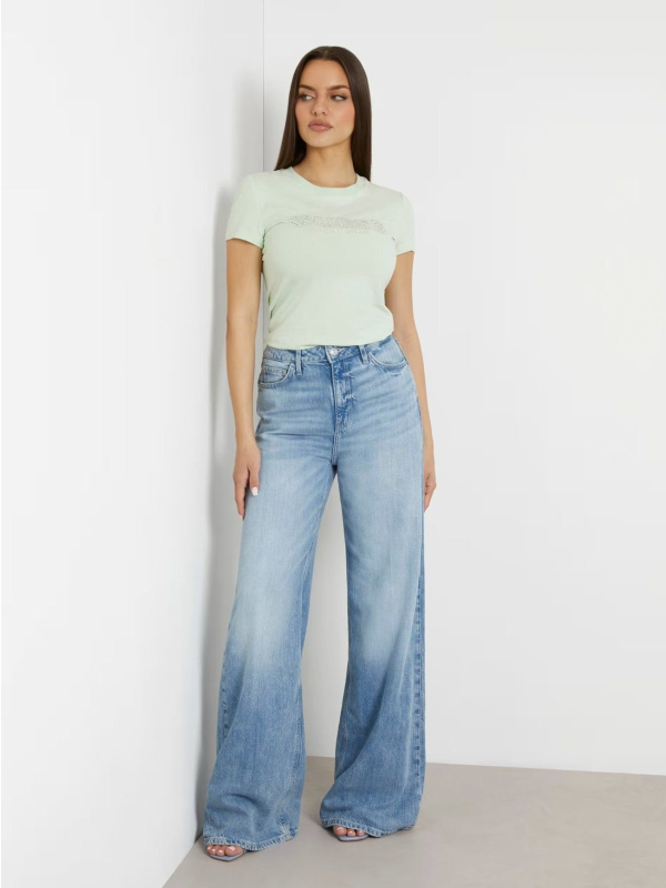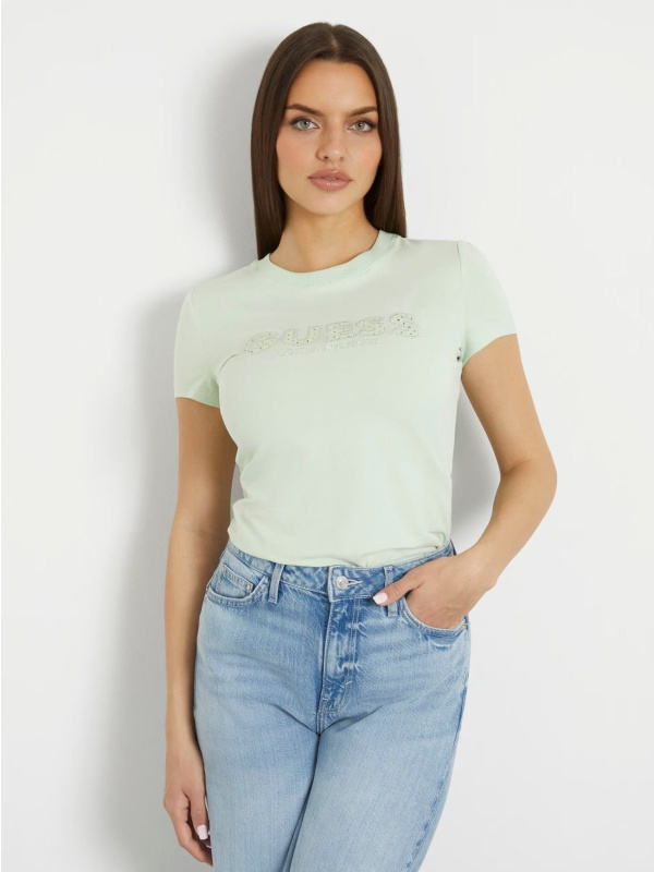 Ženska pamučna logo zelena Guess Sangallo majica kratkih rukava