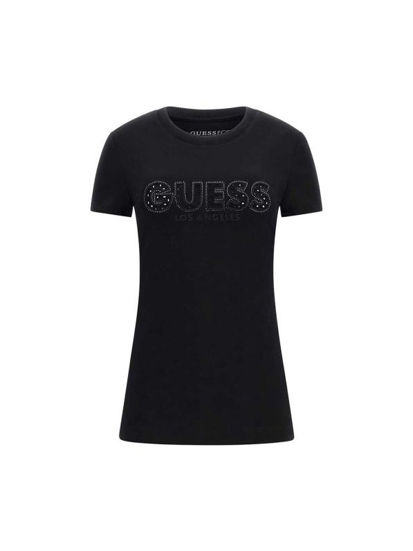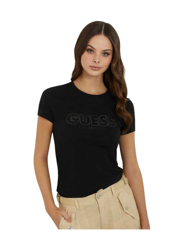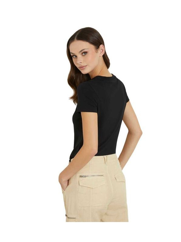 Guess Sangallo ženska pamučna crna majica kratkih rukava