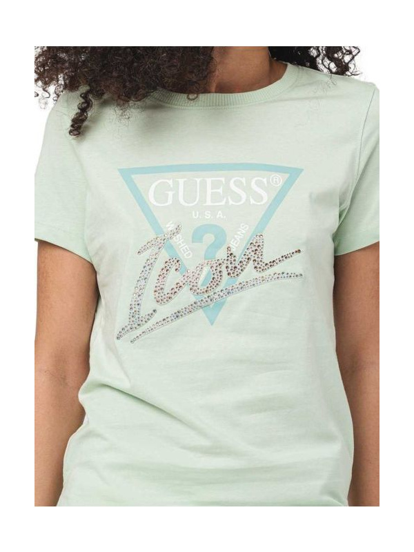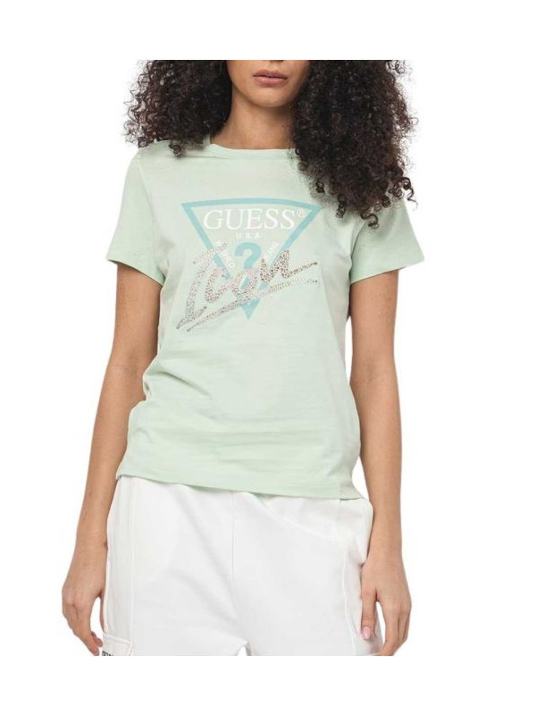 Ženska svijetlozelena pamučna Guess Icon logo majica sa plavim trouglom