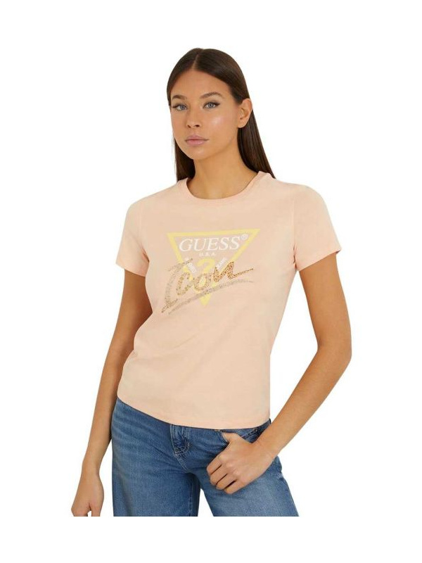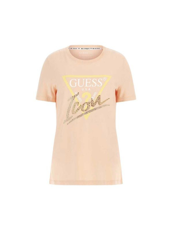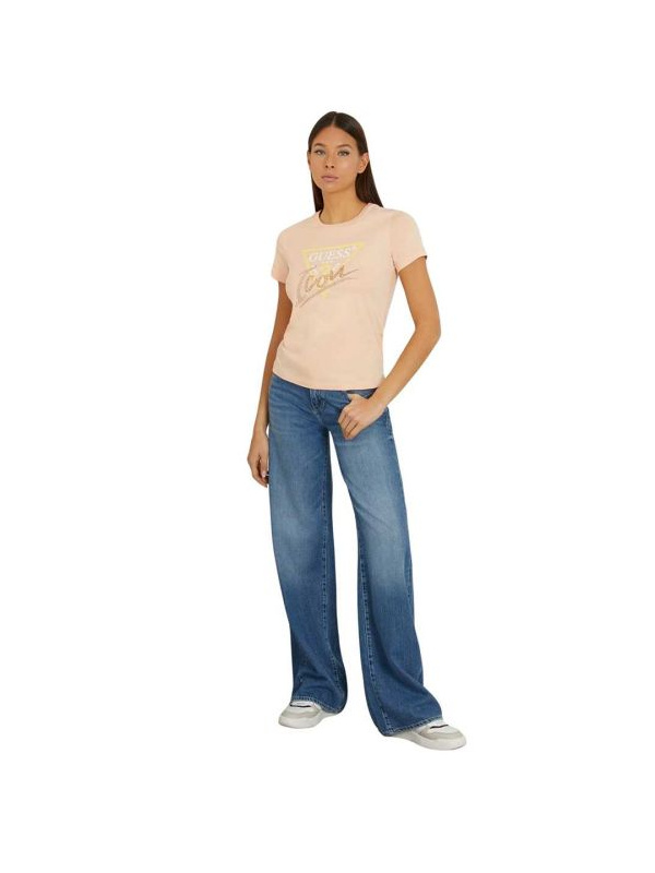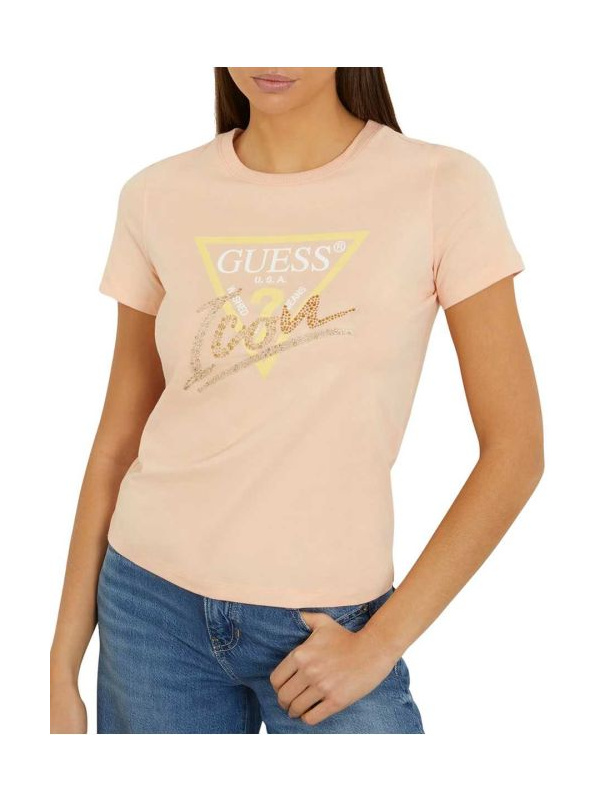 Guess Icon ženska pamučna logo majica u pastelno narandžastoj boji