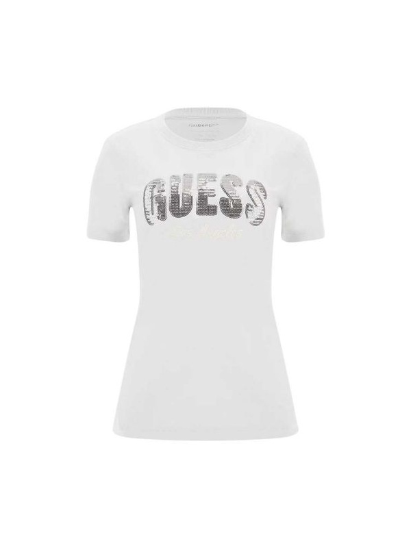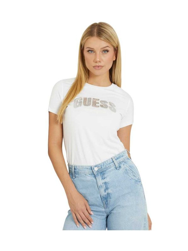 Guess pamučna ženska bijela majica kratkih rukava i okruglog izreza.