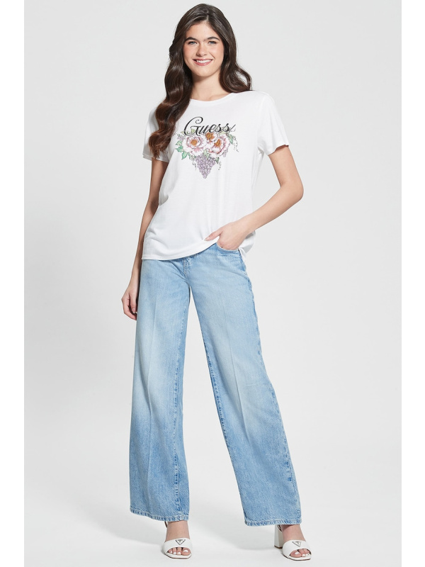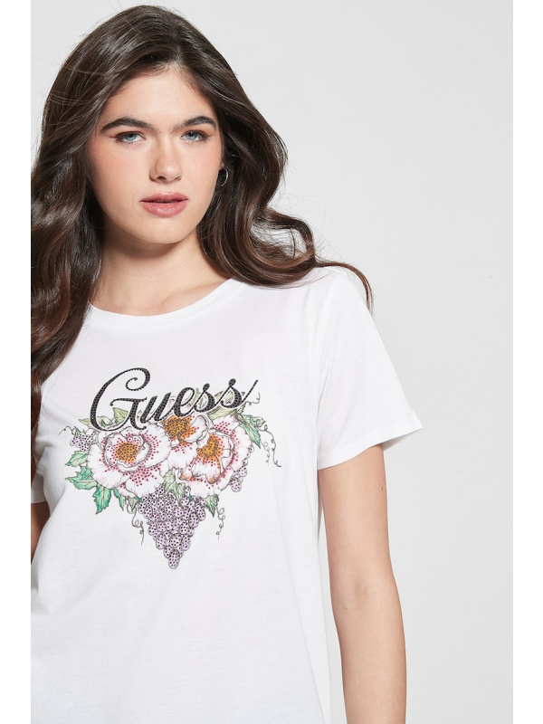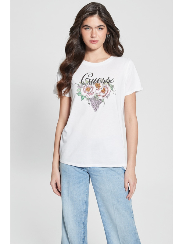 Ženska Guess bijela majica kratkih rukava s logo printom na prsima