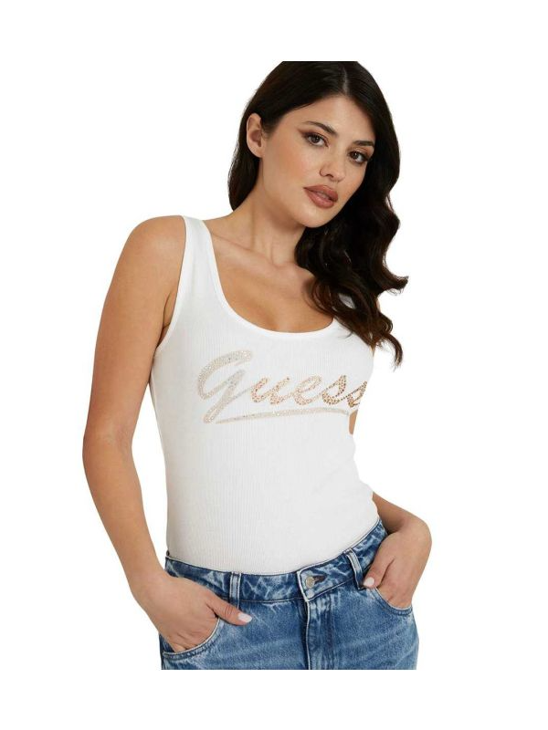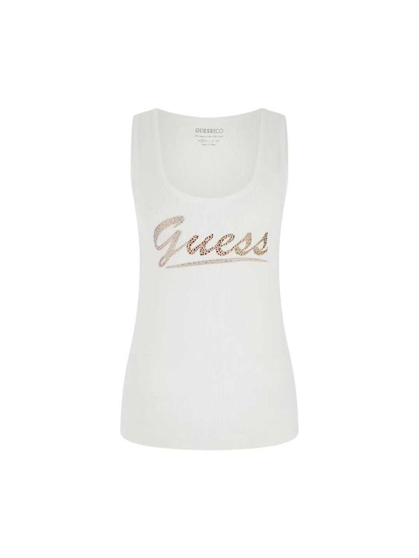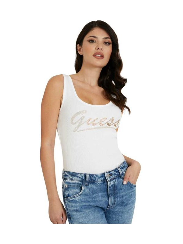Guess rebrasta bijela majica sa logom od cirkona.