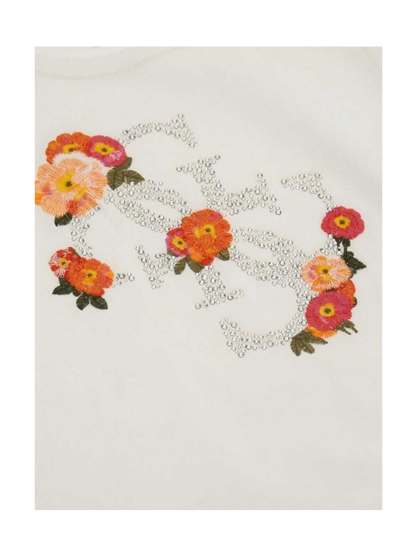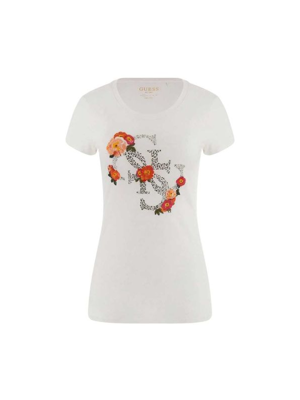 Guess bijela ženska majica sa 4G logo printom i cvjetnim vezom