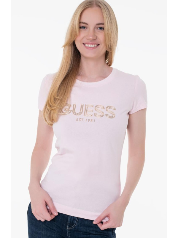 Ženska svijetloroza Guess majica kratkih rukava s logom na prsima