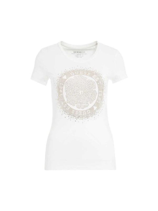 Guess Camelia bijela ženska majica sa sitnim nitnama u boji zlata