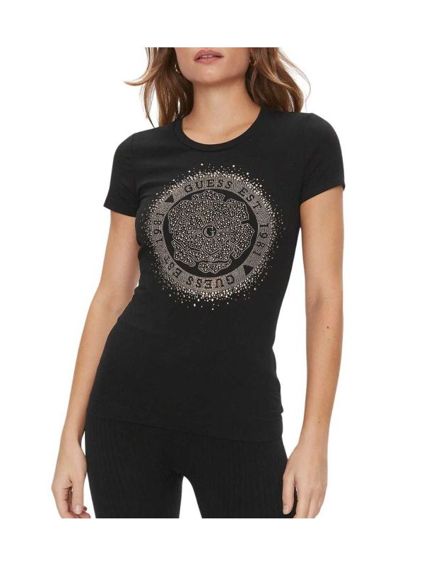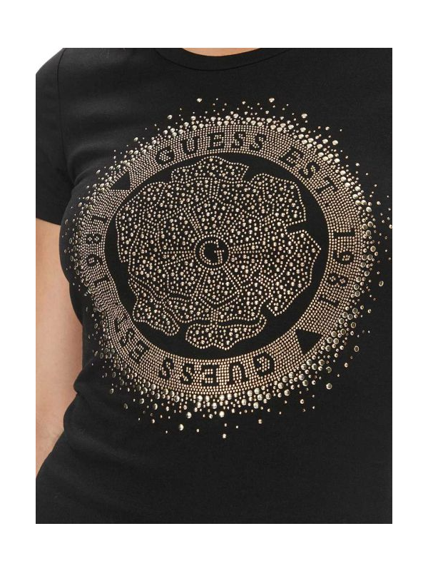 Guess Camelia crna ženska majica sa logom i cirkonima