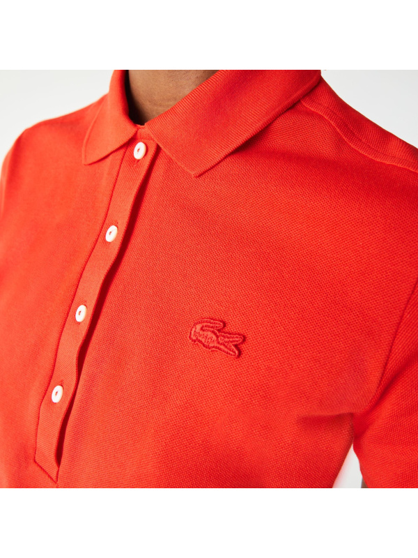 L.12.D polo, ženska verzija legendarne polo majice koju je izumio Lacoste 1933., ima uski kroj i duboki pojas s gumbima.