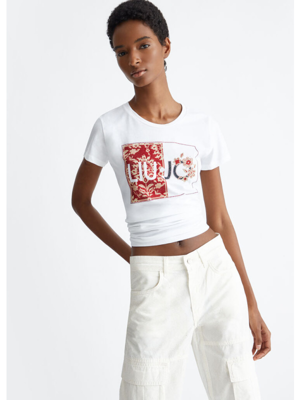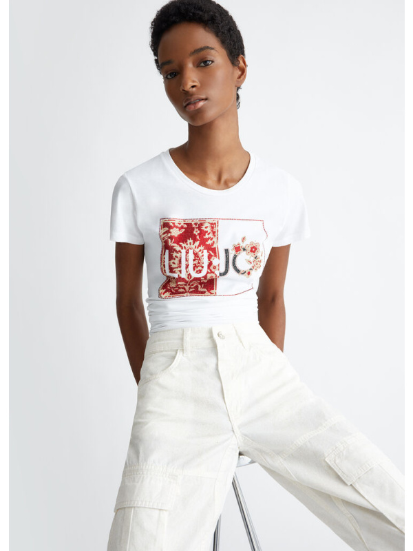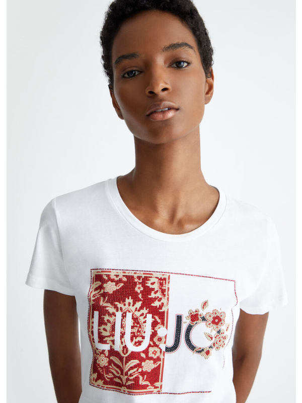 Ženska LIU JO bijela majica s logom i dragim kamenjem
