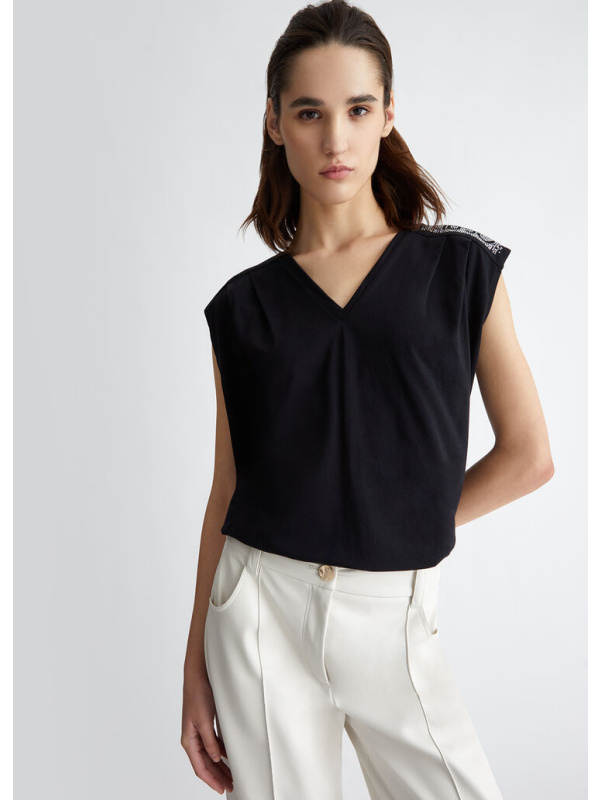 Ženska crna LIU JO majica s kamenčićima