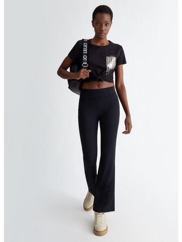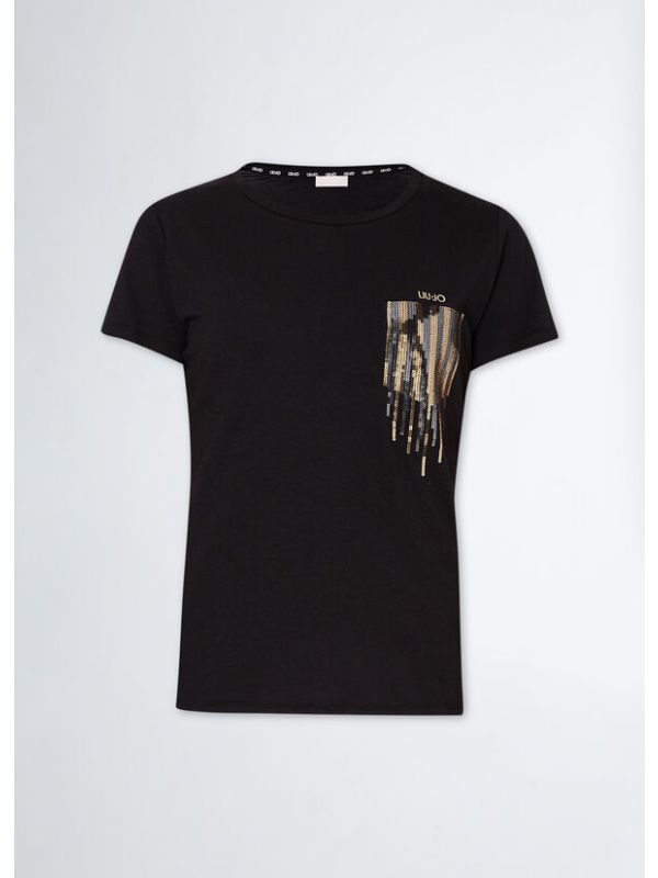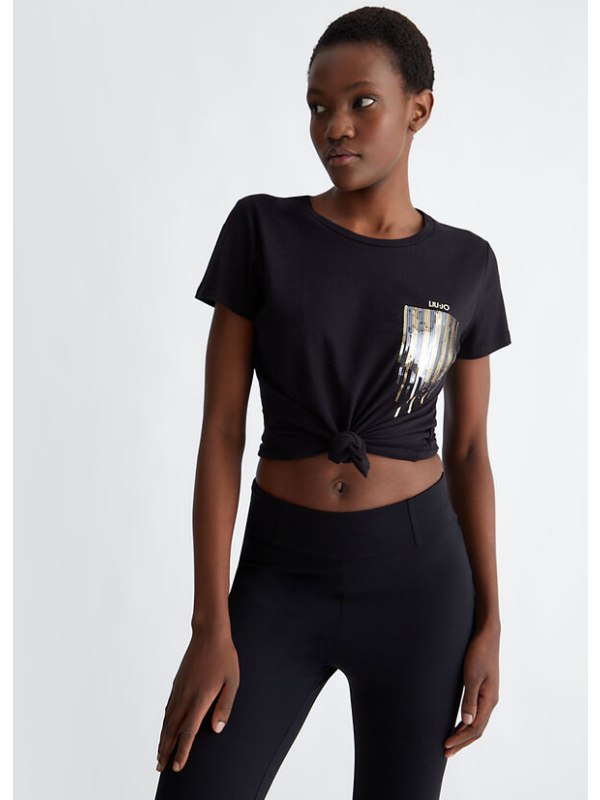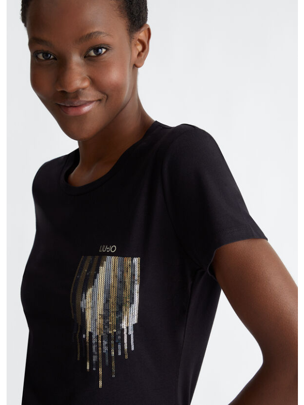 Ženska LIU JO crna majica kratkih rukava s kamenčićima