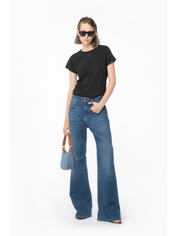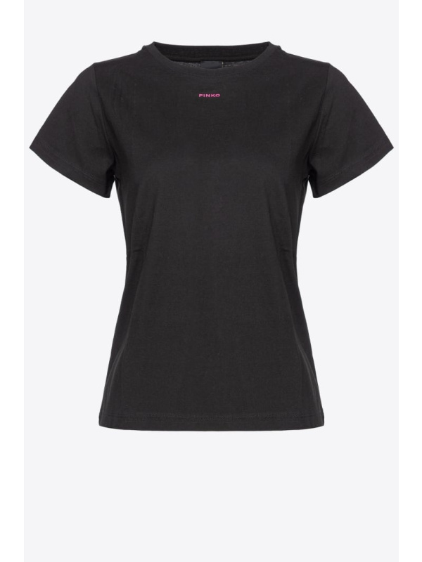 Pamučna PINKO crna majica kratkih rukava s micro logom PINKO na prednjoj strani