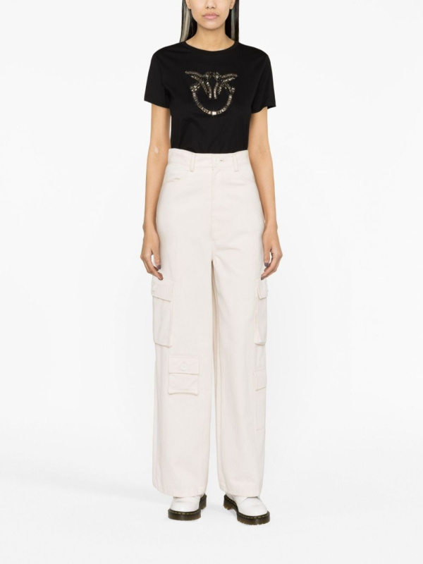Ova PINKO majica je prepoznatljiva po prepoznatljivom Love Birds logou. Ovdje je amblem izrađen od staklenih perli na prednjoj strani potpuno pamučnog komada.
