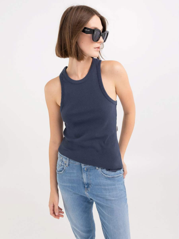 Ženski REPLAY top s okruglim ovratnikom izrađen od rebrastog rastezljivog modala
