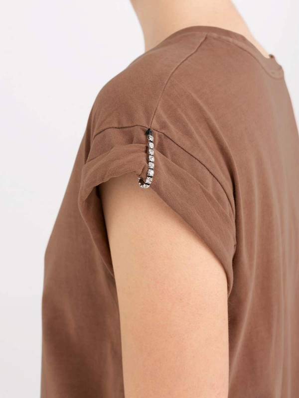 Uz pravilan kroj, odjevni predmet karakteriziraju preokreti na rukavima s malim detaljima od kamenčića.