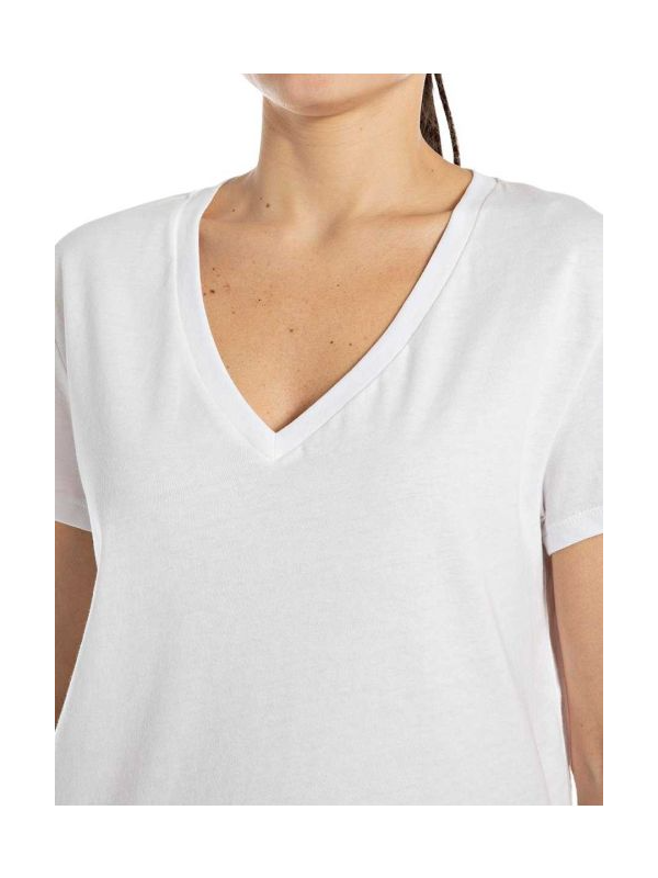 Replay pamučna bijela majica na V izrez