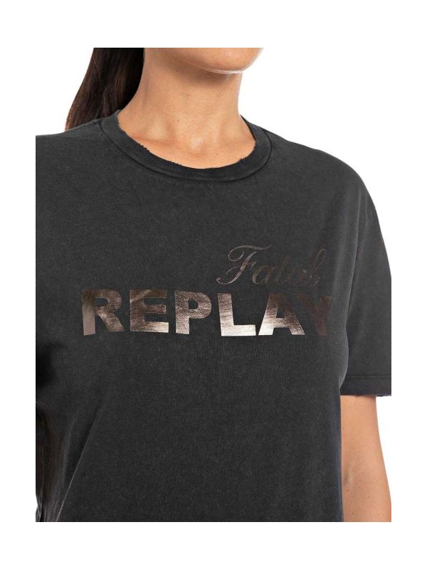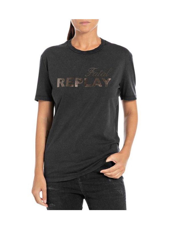 Replay crna ženska majica sa metalik logo printom