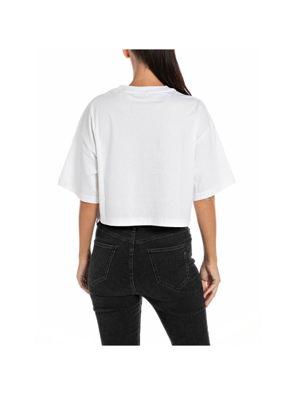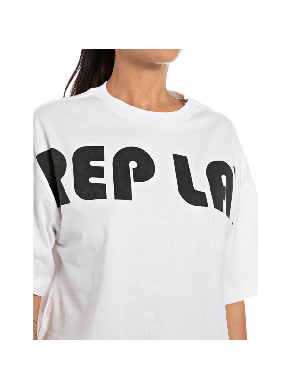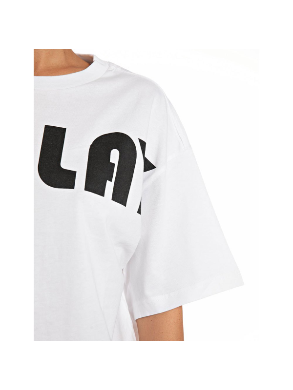 Artikl karakterizira opušteni kroj, spuštena ramena, okrugli izrez te maxi print s prednje strane.