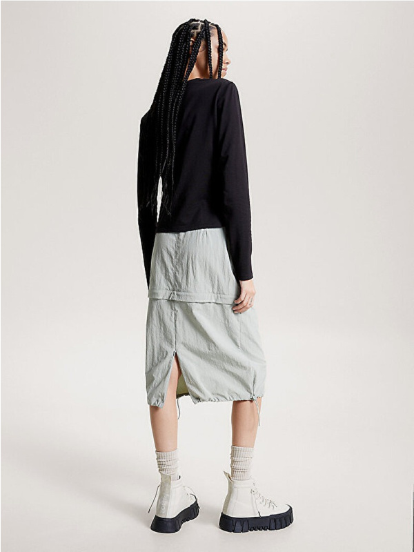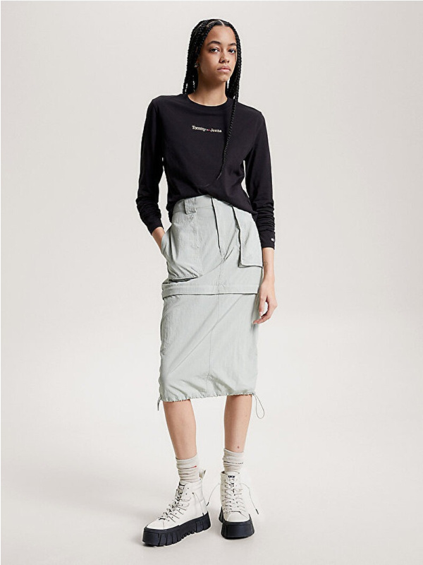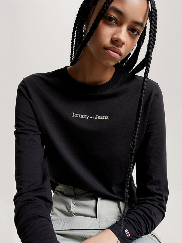 Ova majica dugih rukava redizajnirana je u kratkom kroju i dobila je moderan izgled s kultnim logotipom Tommy Jeans izvezenim zlatnim serifom.