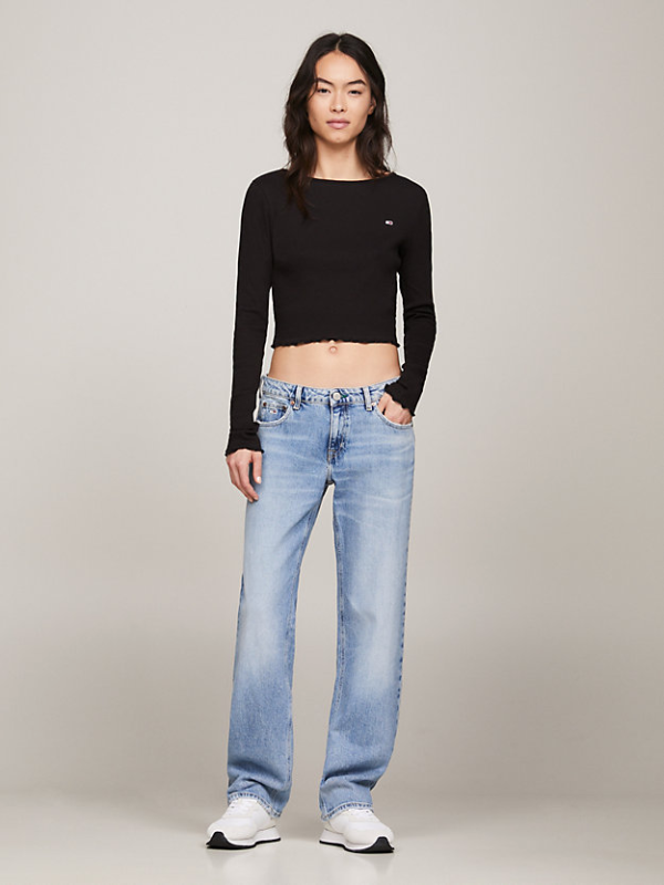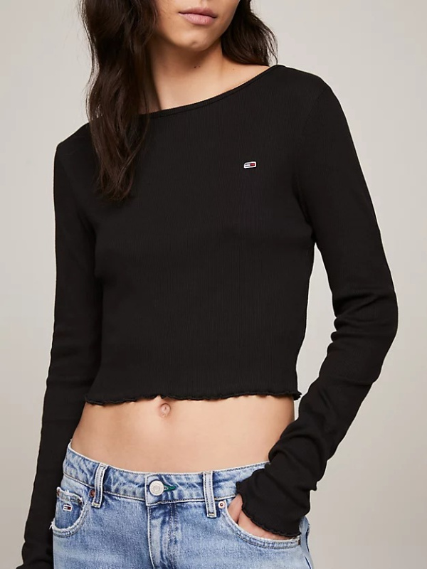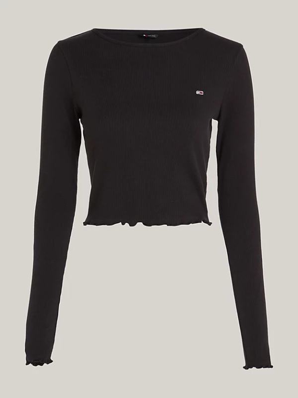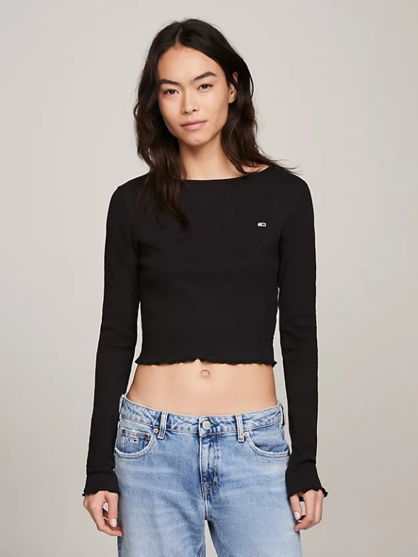 Delikatni naborani obrubi na manžetama i rubu donose dašak retro stila ovoj kratkoj majici dugih rukava.