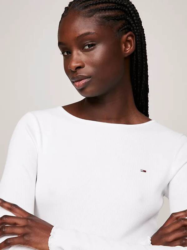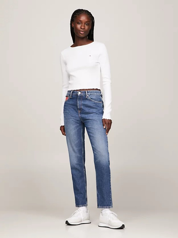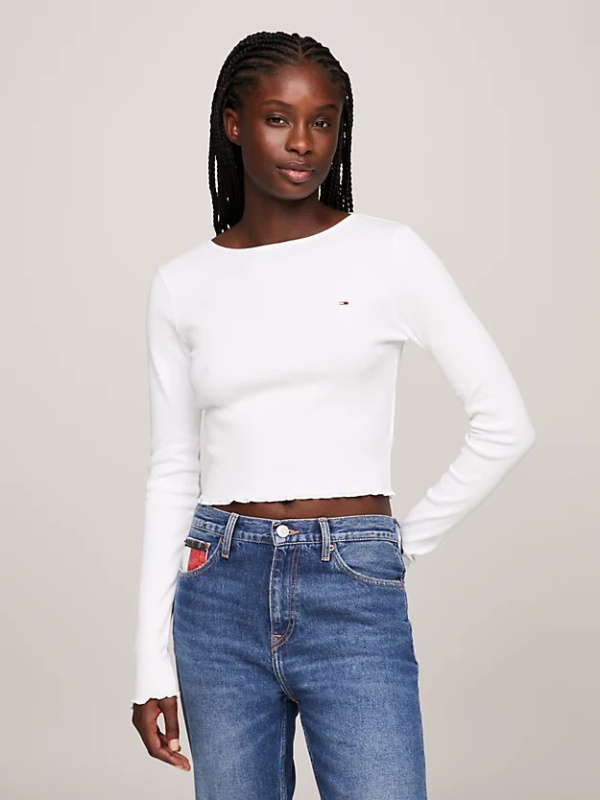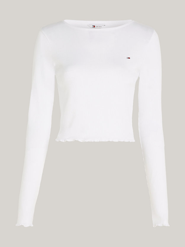 Delikatni naborani obrubi na manžetama i rubu donose dašak retro stila ovoj kratkoj majici dugih rukava.
