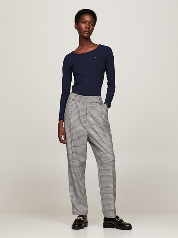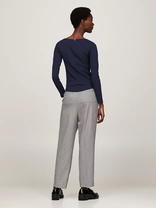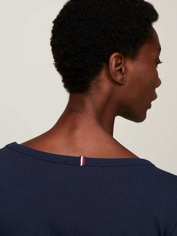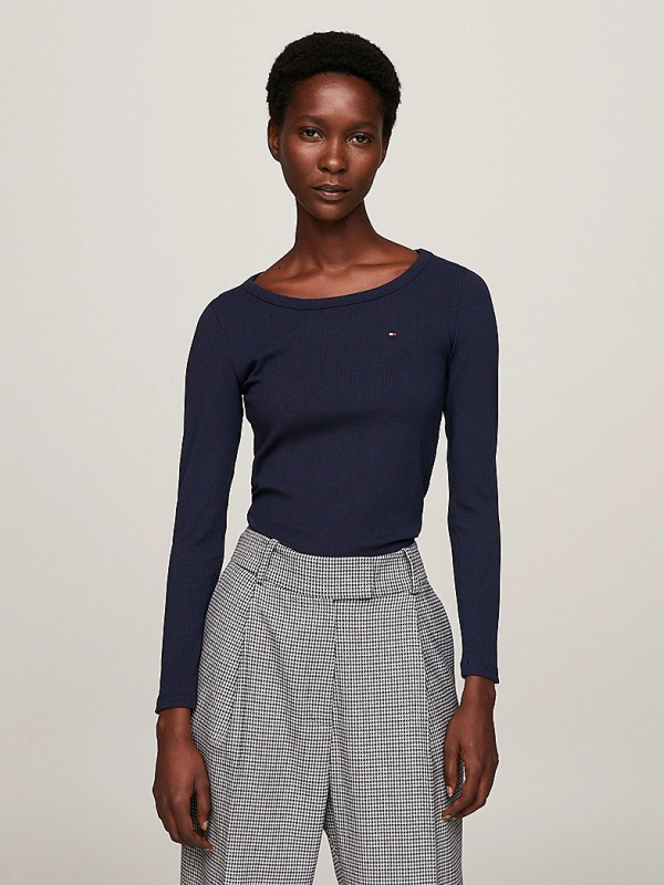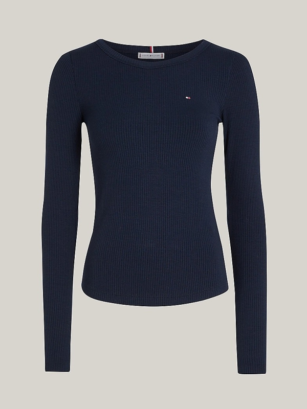 Rebrasti završetak daje dodatnu teksturu ovoj klasičnoj majici dugih rukava s dozom rastezljivosti u uskom kroju.