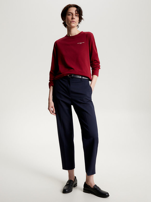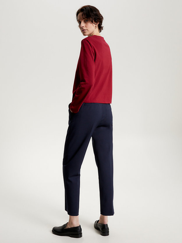 Svladajte umjetnost lakog slojevitosti s ovim džemperom s okruglim izrezom, izrađenim od rastezljivog organskog pamuka i ukrašenim suptilnim markiranjem.
