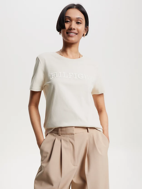 Istaknite svoju vjernost brendu ovom pamučnom majicom s okruglim izrezom koja dolazi s izvezenim odvažnim monotipskim logom Hilfiger.