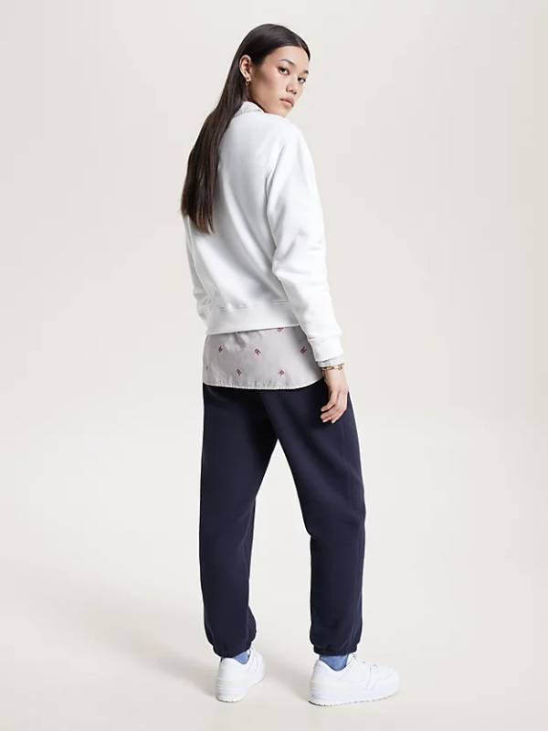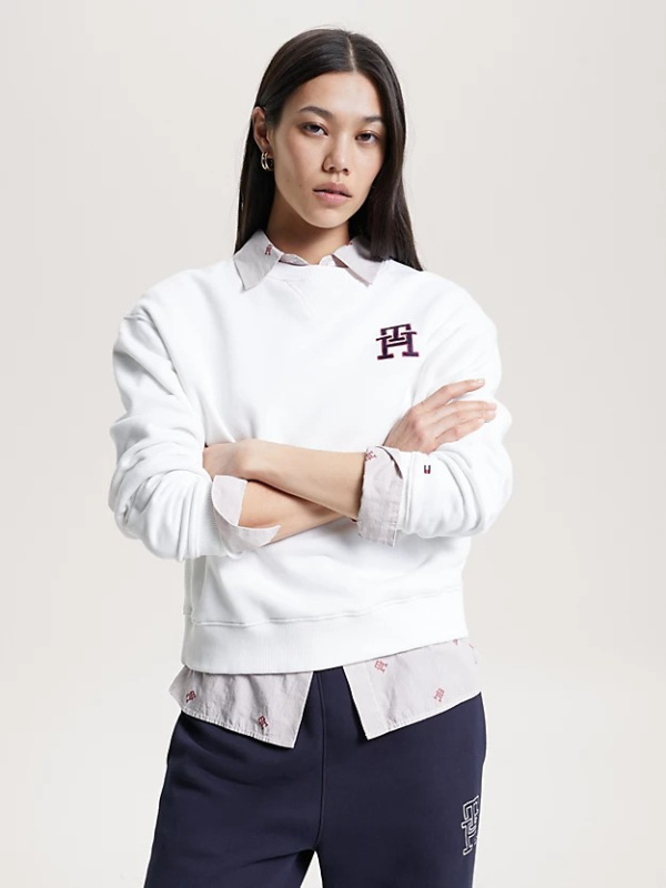 Sa svojom tkaninom bogatom pamukom, okruglim izrezom i klasičnim rebrastim pletenim detaljima, ova trenirka ukrašena monogramom brzo će postati dio casual garderobe.