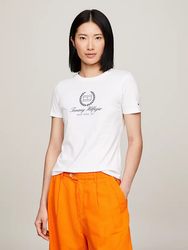 Ova Tommy Hilfiger majica od čistog pamuka elegantnog je uskog kroja i ima logotip na prsima za prepoznatljivu marku.