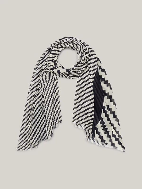 Mješovita nazubljena pruga, lagano izlizani rubovi i diskretni brendovi daju ovom udobnom modalnom šalu izrazit stil za hladnije dane.