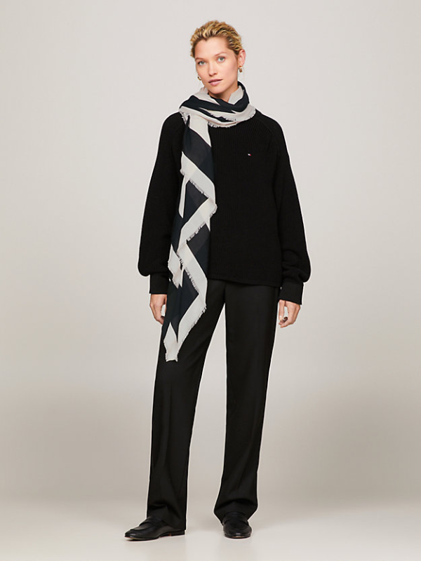 Ovaj četvrtasti šal modalne mješavine s predimenzioniranim motivom grijat će vaš vrat u šetnji u hladnijim danima.