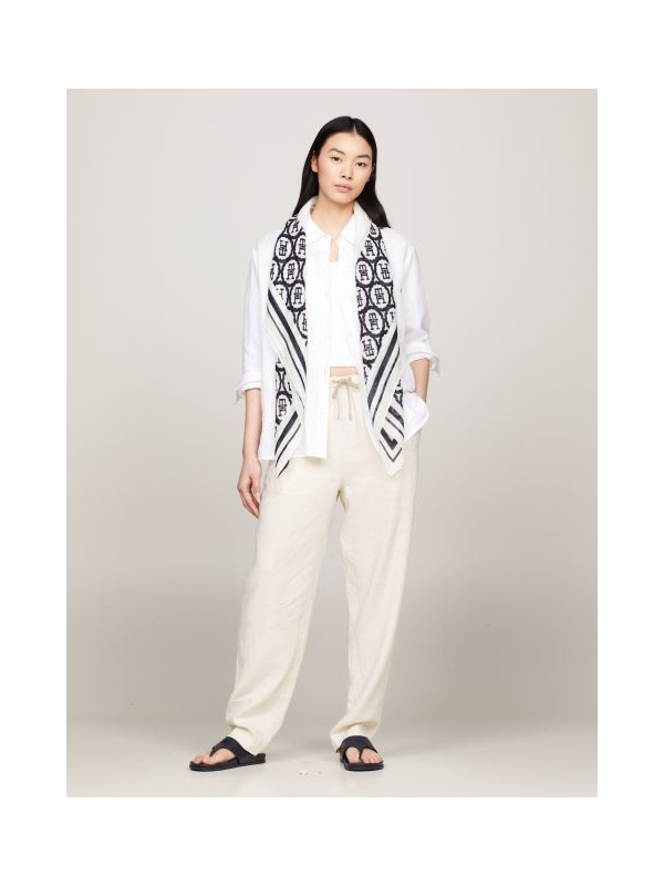 Ovaj svestrani četvrtasti šal nadopunit će elegantan i ležeran izgled svojom čistom lanenom kompozicijom i suptilnim TH monogramskim dizajnom.