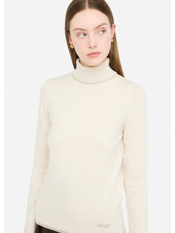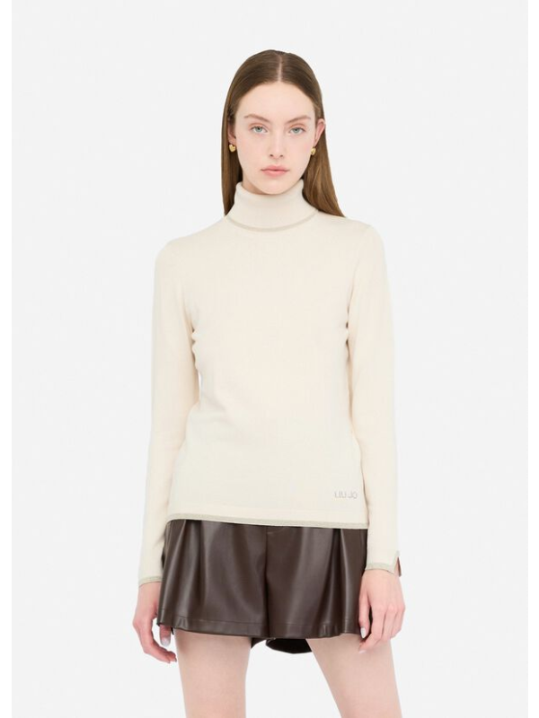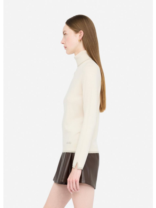 Žensma Liu Jo bež majica dugih rukava s roll ovratnikom